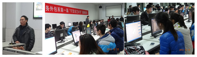 2012年12月12日,由beat365平台唯一官网教务处、学生处主办,软件工程与服务外包系承办的第一届“IT文化艺术节”计算机专业技能大赛(决赛)在星湖第三教学楼三楼实训室隆重举行,学生处副处长杨福元副教授出席了本次活动并发表了讲话。