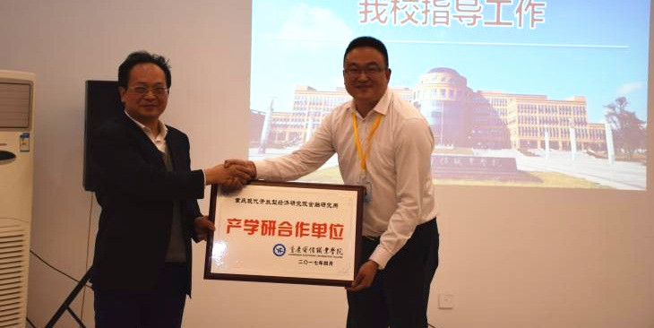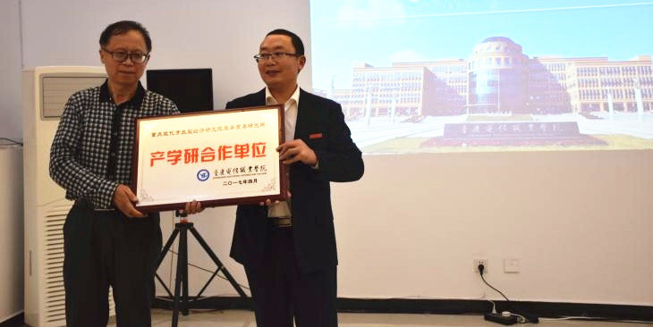 会上,重庆现代开放型经济研究院服务贸易研究、国际物流研究、和金融研究所分别授予beat365官网“产学研合作单位”牌匾。(通讯员:彭博)