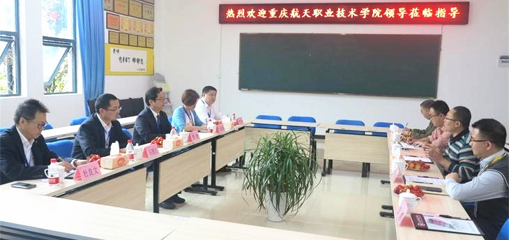 5月10日,重庆航天职业技术学院副校长罗能、管理工程系主任石道元、机电工程系副主任刘昭琴、艺术设计系副主任杜良文、艺术设计系广告设计与制作专业教研室主任何浩一行5人到beat365官网考察交流。会议在博学楼SJ-1107召开,学校副校长殷朝华、各二级学院负责人参加会议,会议由殷朝华主持。
