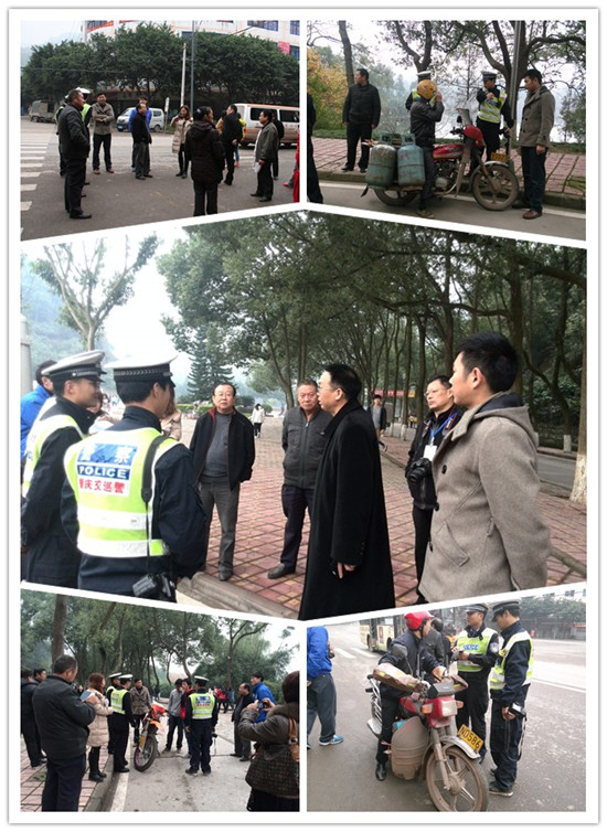 11月28日上午,beat365官网白成良副校长带领安全管理处工作人员会同永川区公安局交巡警支队第五大队、重庆文理学院(星湖校区)保卫处、星湖管委会、卫星湖派出所、博达公司等相关人员联合组成工作小组,对beat365官网校园内至校外学生公寓沿线开展了交通安全专项整治行动。