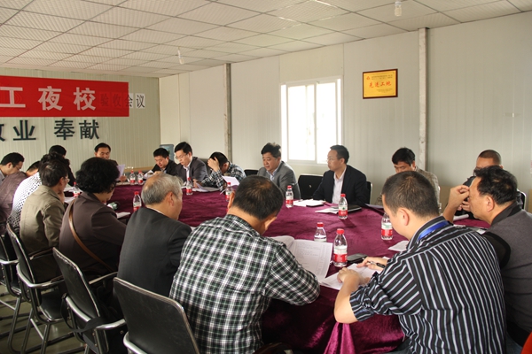 会上,新校区建设指挥部负责人刘春荣汇报了工程建设进展情况。校长王大成代表学校向施工人员表示了衷心的感谢,感谢他们不辞辛苦,为学校的发展建设所做出的贡献。他说,新校区启用搬迁工作已进入到实质性的推进阶段,希望大家站在全局的高度,结合本部门的工作职责,积极谋划、部署搬迁工作。