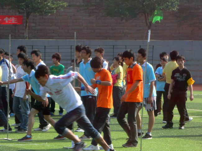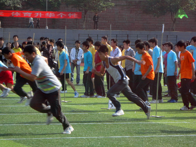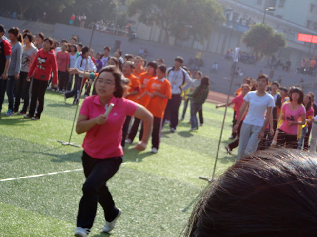 接力赛在一阵阵加油声和掌声中把整个运动会推向了高潮。在激动人心的接比赛中,电信学子个个似离弦的箭一般飞了出去,一根木棒在大家手中不断传递着。