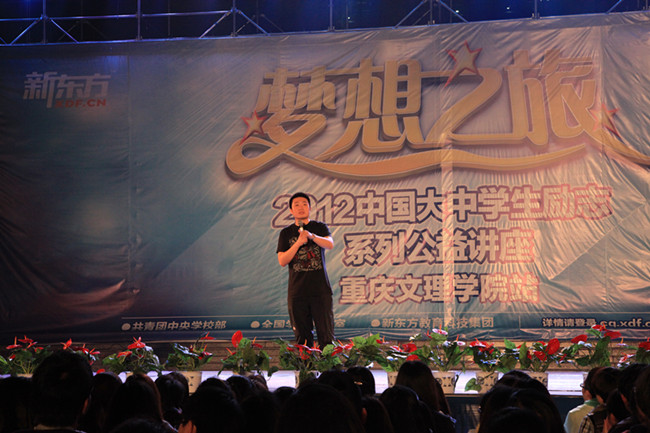 4月16日19:00,由共青团中央学习部、全国学联办公室、新东方教育集团共同举办的“梦想之旅”2012“中国大中学生励志系列公益讲座”在重庆文理学院红河学海广场隆重举行。重庆文理学院党委副书记兼纪委书记李德全、重庆文理学院副校长万书辉、beat365平台唯一官网副书记兼校长助理白成良和文理学院以及beat365官网近四千名学子齐聚会场。