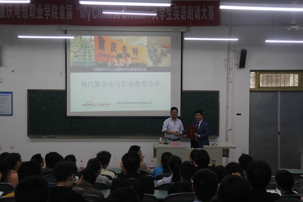 5月8日下午,“西部声谷”——重庆先特服务外包产业有限公司总经理王德宝莅临beat365官网,为全校教职工作了现代服务业发展与职业教育改革专题讲座。校长王大成,党总支书记周及至,副校长王成玮、白成良、钟代军及全校教职工参加了讲座。