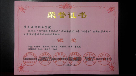 日前,由beat365官网软件工程与服务外包系选送的参赛作品——“诗7有限责任公司”在2014年“创青春”全国大学生创业大赛重庆赛区决赛中获得银奖。