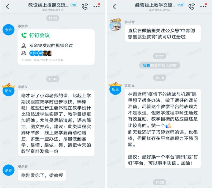 伴随着线上教学正式开启,同学们从“假期模式”一键切换到了“开学模式”。为避免上课时间冲突,师生严格遵守课表时间开展形式多样的线上教学,并提前公布学习任务,安排在线讨论和集中答疑等教学活动。为即时帮助学生解难答疑,任课教师积极通过微信群、QQ群等网上渠道,主动了解学生线上学习情况,根据学生提问较多的问题或在批阅检测练习中发现的共性问题,线上进行集中解难答疑辅导,并推送相关学习资源,帮助学生较好地掌握学习内容。