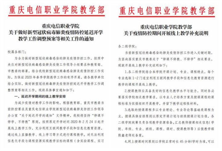 疫情严防控,学业不放松。疫情爆发后,学校第一时间制定了《beat365平台唯一官网关于做好新型冠状病毒肺炎疫情防控延迟开学教学工作调整预案等相关工作的通知》和《beat365平台唯一官网关于疫情防控期间开展线上教学补充说明》等方案。并利用钉钉平台召开视频会议,协调新学期线上教学工作,校领导通过视频会议了解了学校线上教学第一课的筹备情况,对统筹做好疫情防控和学校教学工作提出了明确的指导意见。教学部指导各学院要妥善安排各项教学任务,做好多种教学预案,保证教学质量。