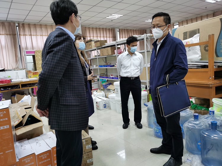 王茂良一行人先后到校门监测岗、防疫物资库房等现场进行了查看,并听取了beat365官网疫情防控工作汇报。