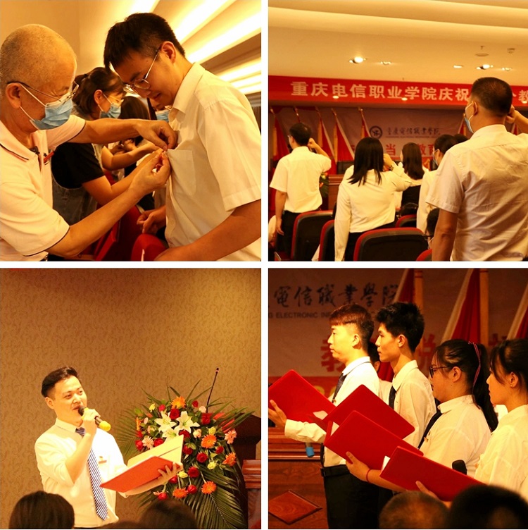 大会在庄严的国歌声中拉开帷幕。会上,党委书记张勇刚宣读了《beat365平台唯一官网关于表彰第36个教师节先进集体、师德师风标兵、优秀教师、优秀教育工作者和优秀辅导员(班主任)的决定》,副校长皇甫涛宣读了参加校外各类比赛获奖教师名单,集中对2个先进集体、50余名优秀教师进行了表彰;老教师为新加入电信学院大家庭的新教师们戴上满是归属感的校徽;副校长皇甫涛带领全体新教师庄严宣誓入职,全校教职员工共同见证了这一神圣时刻;学生代表为老师们纷纷献花,道上一声老师您辛苦了;同时,向毅老师与四位学生带来“一问一答”式诗歌朗诵,为教师节献礼。