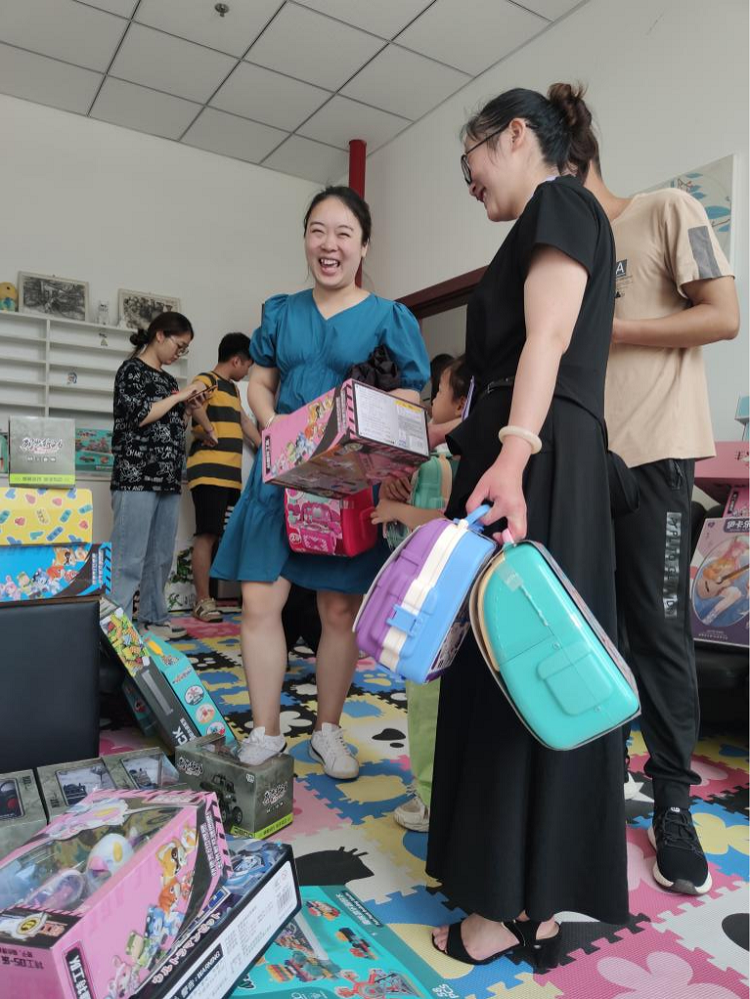 学校工会提前统计各教职工子女信息,并根据不同性别和年龄段儿童的特点和喜好,精心准备了芭比娃娃、玩具赛车、智能积木、儿童钓鱼套盒等玩具,为教职工适龄子女赠送了一百多件精美礼物。