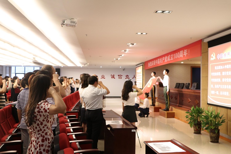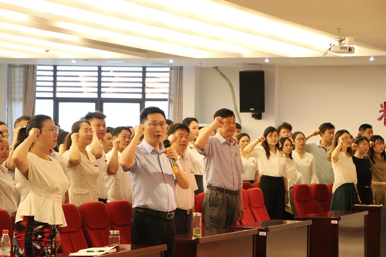 直播结束后,在党委书记张勇刚的带领下,全体党员怀着激动的心情面向党旗重温了入党誓词。