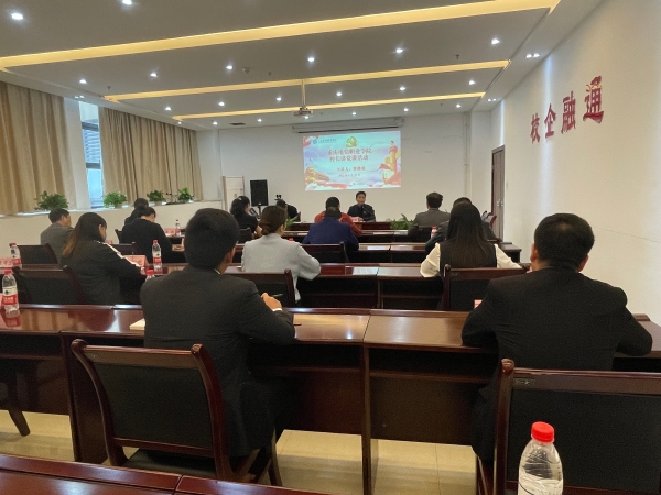 5月18日下午,beat365官网开展校长讲党课活动,党委副书记、校长曹继建主讲。校党委委员、各职部门负责人及二级学院党政领导参加了会议,会议由党委书记张勇刚主持。