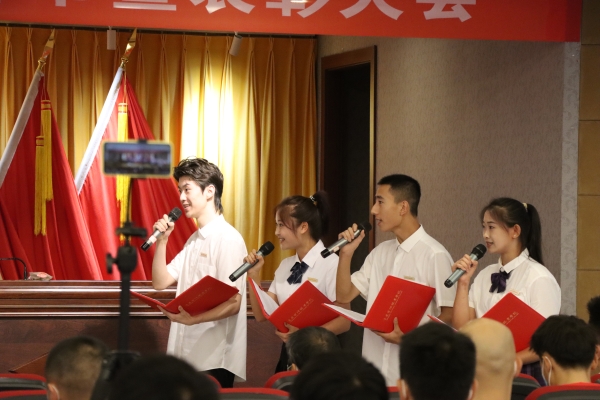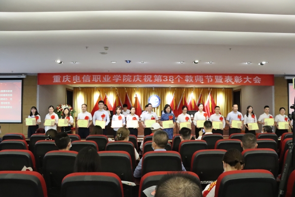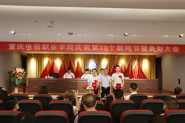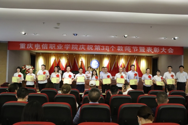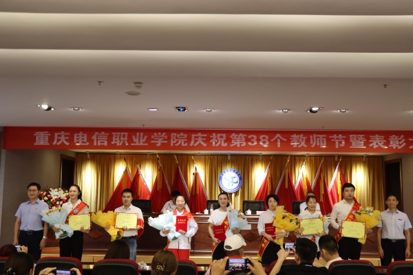 大会在庄严的国歌声中拉开帷幕。会上,党委书记张勇刚宣读了《beat365平台唯一官网关于表彰第38个教师节先进集体、优秀个人的决定》和《beat365平台唯一官网关于颁发在校工作十年证书的决定》。校领导对优秀教师、优秀教育工作者、优秀辅导员(班主任)、市级竞赛获奖者进行了表彰,向“在校工作十年”教职工颁发荣誉证书;副校长皇甫涛带领全体新教师庄严宣誓,教师代表在现场为新教师佩戴校徽,全校教职员工共同见证了这一神圣时刻;随后,校团委书记、学工部副部长向毅与四位大一新生带来饱含深情的 “桃李缘”诗歌朗诵,为教师节献礼。