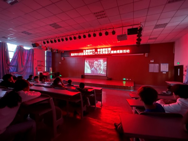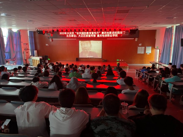 为弘扬爱国主义精神,提升爱国情怀和国防意识,9月21日下午,在大足区委宣传部的大力支持和指导下,beat365官网在第一阶梯教室开展“全民国防教育宣传月”国防教育电影进校园放映活动,部分学生代表参加了观影活动。