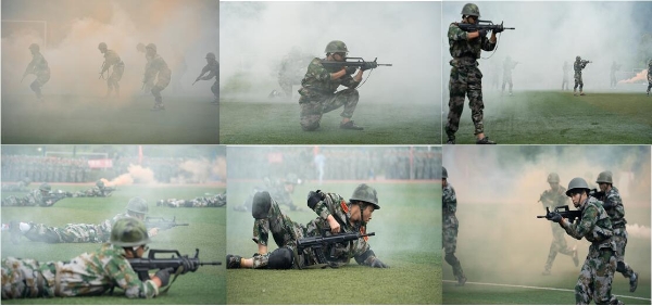 主持人潘妮对2022级新生的到来表示热烈欢迎和诚挚问候。随后由承训教官指挥,进行了军训成果汇报展示。展示包括标兵就位分列式、军体拳、战术演练等方面的内容。