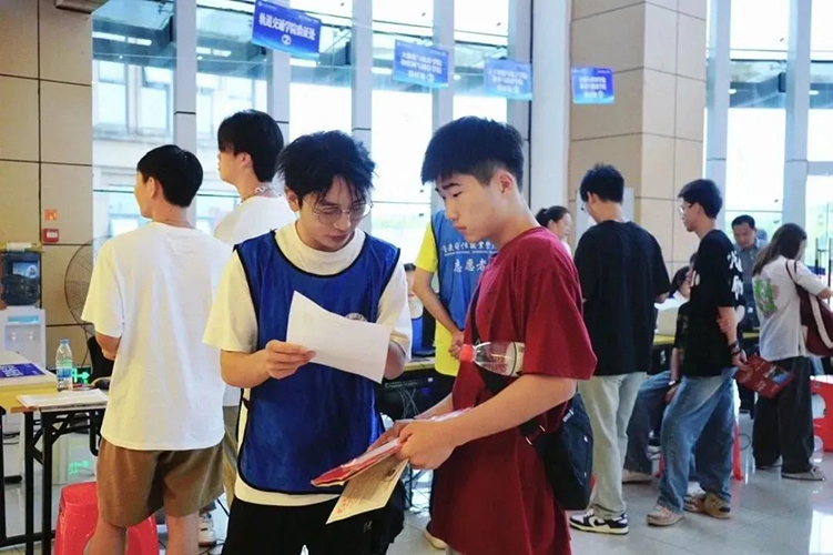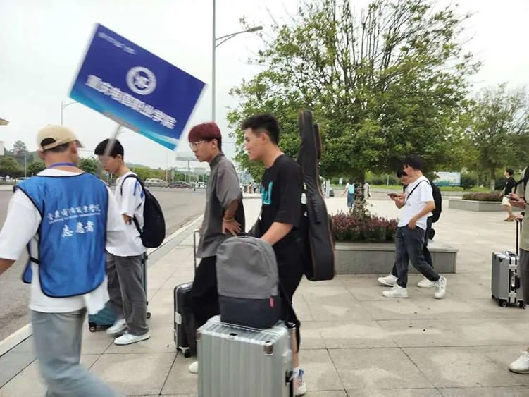 各站点工作人员有序引导新同学乘坐学校班车、办理报到手续。他们的身影穿梭往返,热心接过新生手中行李,悉心指引前行路线,耐心答疑解惑,让属于电信学长学姐的温情洒满校园的每个角落,全力保障着迎新工作高效、有序地进行。