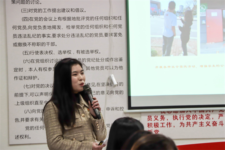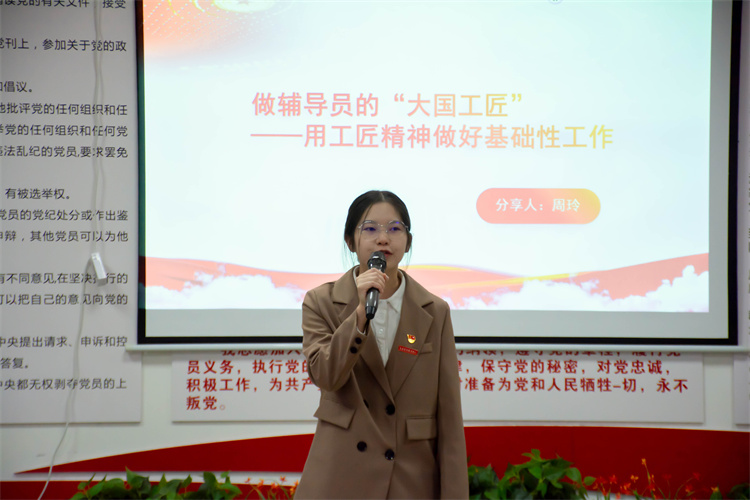 潘妮作总结讲话,她肯定了新入职辅导员们的精彩分享,分享从发现问题、聚焦难点、解决问题三个维度,紧扣辅导员工作职责,也希望今后辅导员们要以昂扬的斗志、自信的态度,感悟初心使命,交流合作,共同成长,为党育人,为国育才贡献力量。