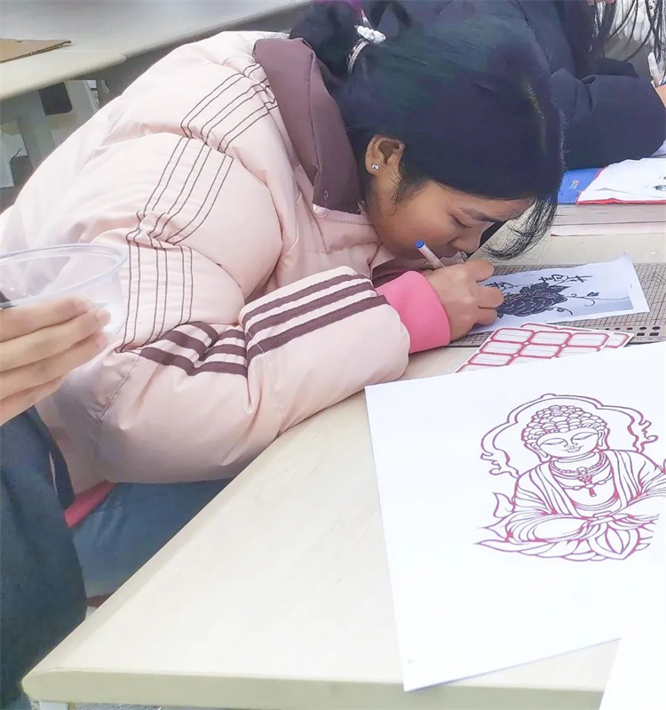 在这里同学们赏可爱的摆件,做精美的灯笼,画糖画、剪窗花、写福字,同学和老师参与其中,在亲身体验传统手工艺术的制作过程中,感受艺术,了解传统文化的积累沉淀,体验传统文化的深厚魅力。