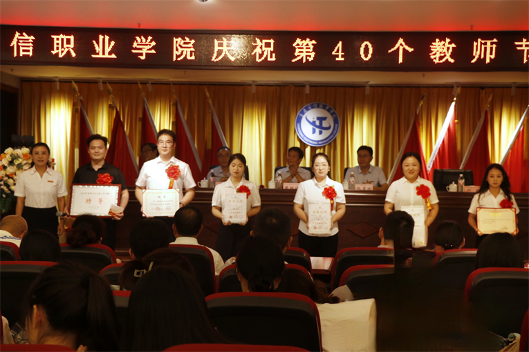 校领导对先进集体、优秀个人、微课比赛优秀组织单位和团队、教师教学竞赛优秀组织单位和个人、市级竞赛获奖者进行了表彰,向“在校工作十年”教职工颁发荣誉证书。