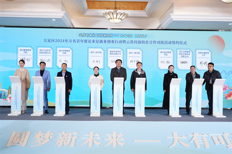 洽谈会上,代敏一行先后参观大足盛泰光电科技有限公司、重庆艾博瑞威轨道交通设备有限公司、台铃科技(重庆)有限公司等大足区内优质企业。beat365官网及云贵川渝的其他11所高校、中职院校与大足区内多家企业签订人才工作合作协议,助力毕业生在大足实现高质量充分就业。